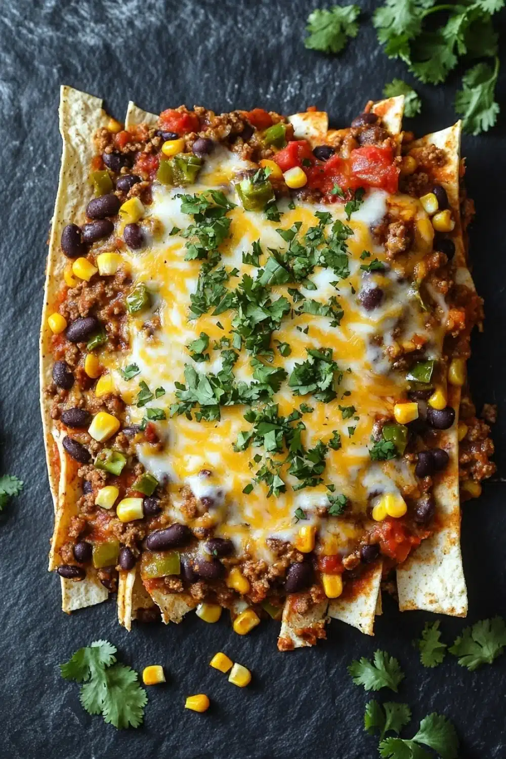 - The layers of seasoned beef, beans, and corn create a hearty meal that’s perfectly balanced between rich and fresh.
