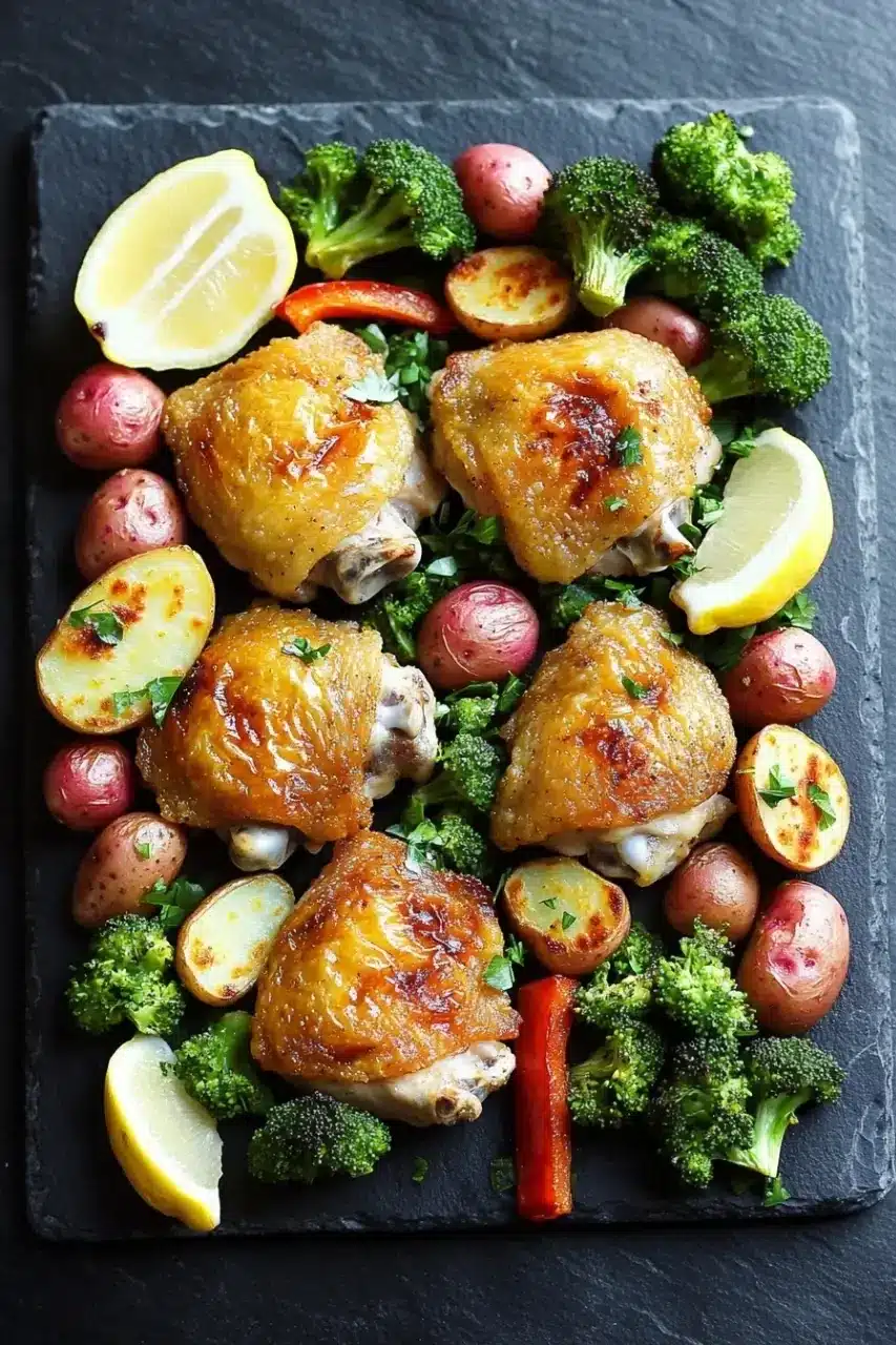 Kitchen Notes: You don’t need fancy equipment for this one — just a sturdy rimmed sheet pan that can hold everything without crowding. Serving this alongside a crisp green salad or a glass of chilled white wine can elevate the experience, though it’s hearty enough to stand on its own. I’ve sometimes swapped broccoli for green beans or added a handful of cherry tomatoes for a pop of sweetness, but honestly, the original version is already so balanced. If you want to switch things up, try using skin-on chicken breasts instead of thighs, but you might lose some of that extra juiciness.