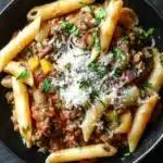 Some evenings, you just want to come home to something that feels like it’s been waiting there for you—warm, filling, and a little bit nostalgic. This pasta dinner with beef does just that. The scent of garlic and onions sizzling in olive oil mingles with the slow simmer of tomatoes and herbs, filling your kitchen with a promise of comfort. I usually get a bit distracted by the smell and find myself sneaking tastes before the pasta’s even ready. It’s that kind of dish that invites you to linger a little longer, to slow down and savor the moment.