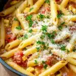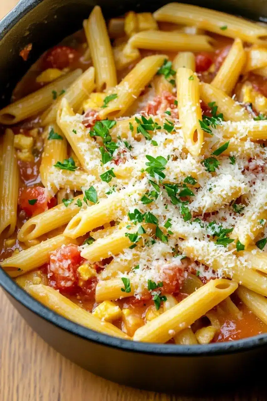 Don’t worry if you’re not a pro with Dutch ovens — this recipe is forgiving, and the pot you have at home likely works just fine. Pair it with a simple green salad or a crusty slice of bread to round out the meal. If you have fresh herbs on hand, toss them in at the end for a pop of color and fresh flavor. Sometimes, I’ve swapped penne for rigatoni or even elbow macaroni, and while it changes the texture slightly, it’s still delicious.