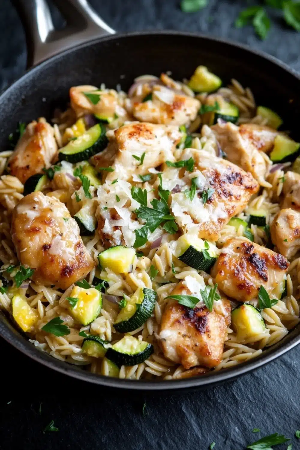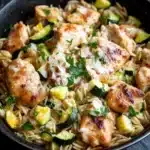 I remember the first time I made this — the kitchen smelled like garlic and butter within minutes, and I couldn’t help but hover around the stove, waiting impatiently. The sizzle of the chicken hitting the hot pan was almost distracting, and I think I stirred the orzo a little too often, worried it might stick. It was somewhere between dinner and dessert in my mind, that warm, creamy orzo mingling with tender bites of chicken and zucchini. It didn’t come out perfectly smooth, but that slight unevenness made it feel homemade and real. And the hint of parsley on top gave it just enough freshness to balance out the richness.