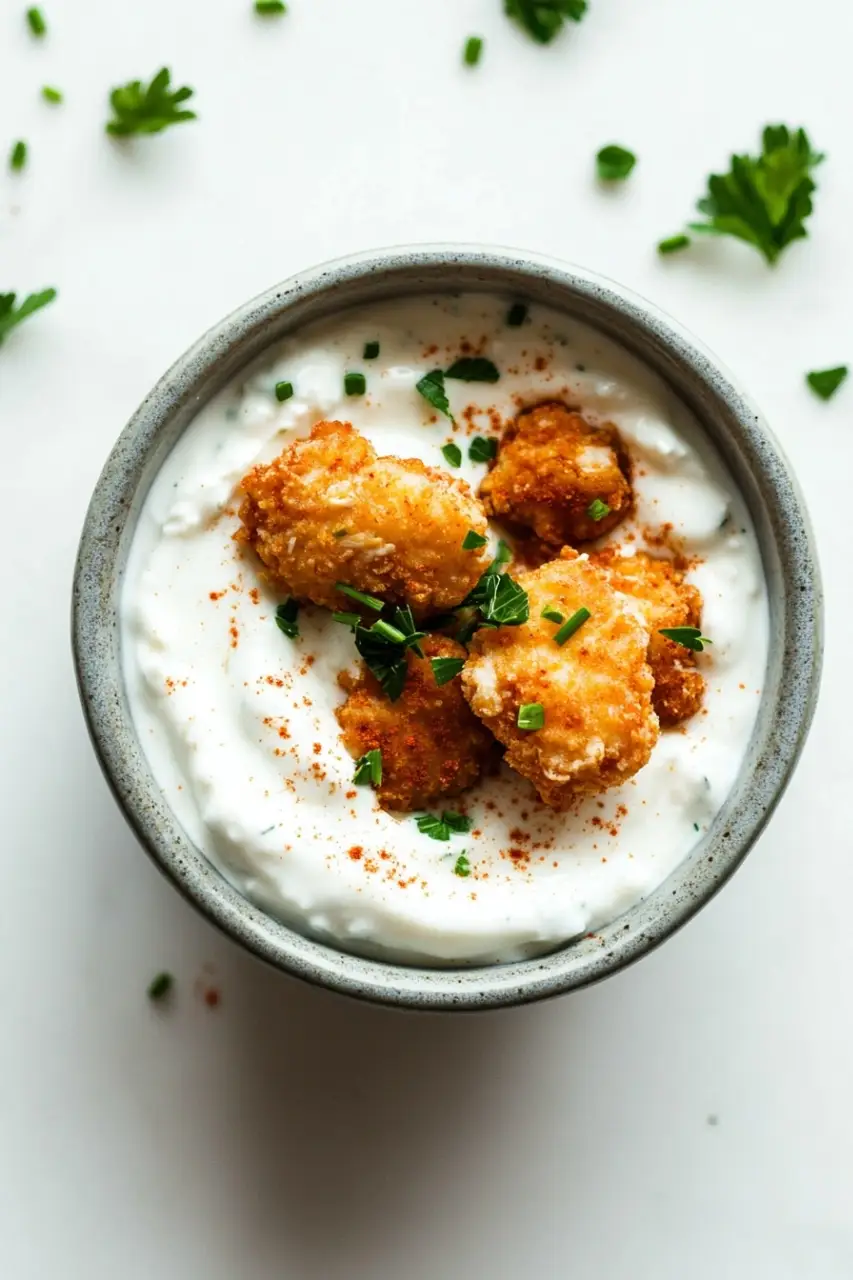 A light and flavorful dip perfect for pairing with crispy chicken nuggets, made with Greek yogurt and fresh herbs to keep it low in calories without sacrificing taste.