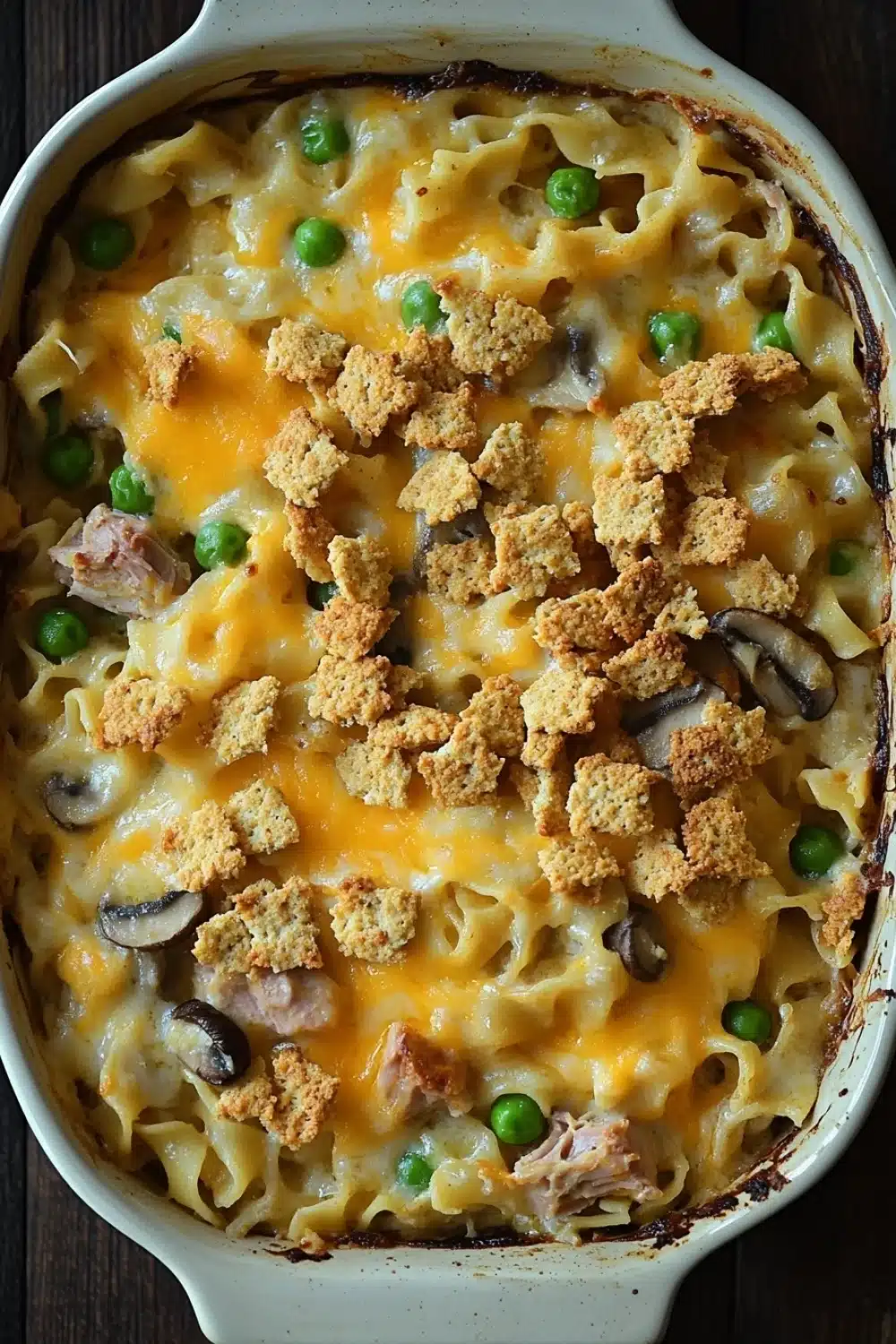There’s something about the humble tuna noodle casserole that immediately transports me back to my grandma’s cozy kitchen—where the scent of sautéed onions mingling with warm mushroom soup would instantly drop any worries at the door. This dish isn’t just a throwback; it’s a full-on nostalgia trip wrapped in a golden, crispy cracker crust. I remember snagging a spoonful right off the stove, that first crackle of the buttery topping sending me straight to cloud nine. It’s pure no-frills comfort food, the kind that sticks to your ribs and refuses to let go—no fancy frills, just honest-to-goodness ingredients coming together like old friends. The egg noodles soak up all that creamy goodness, while the sharp cheddar pokes through with a little tang, and the peas add a sneaky pop of sweetness. Trust me, this isn’t just your run-of-the-mill casserole; it’s a plateful of mid-century Americana, updated just enough to keep it from feeling like it’s been gathering dust in your recipe box. If you’ve never been a fan of casseroles, give this one a whirl—sometimes the old ways are the best ways to satisfy that craving for something warm and familiar.