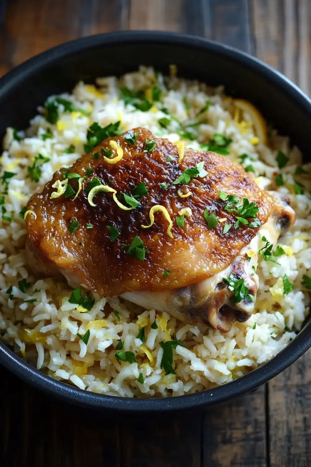 A flavorful and easy one pot meal featuring tender chicken thighs cooked with fragrant lemon-infused rice and aromatic herbs. Perfect for a quick weeknight dinner.