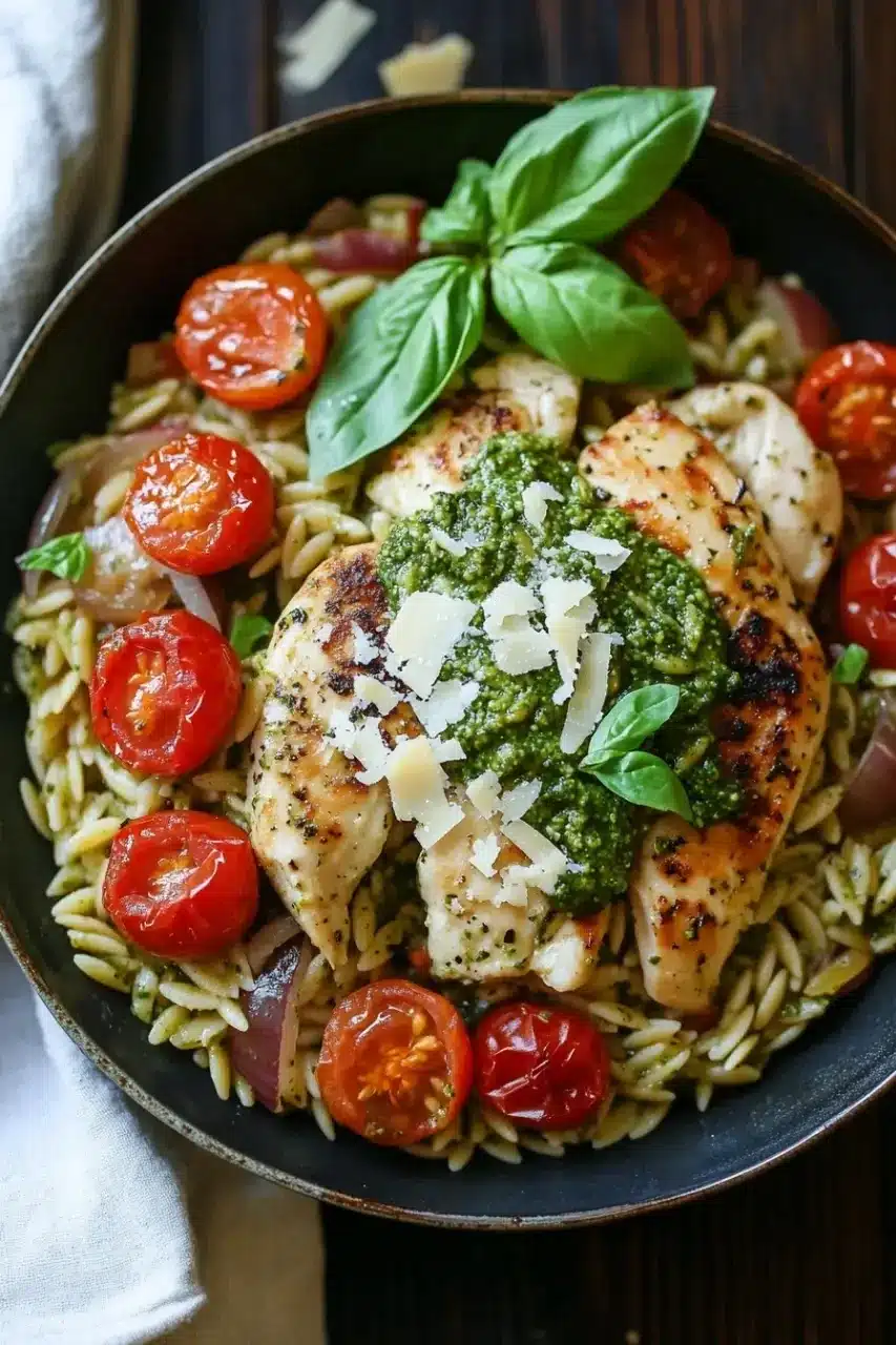 I remember the first time I tried this dish; the scent of garlic and basil filled the air, and I was half-distracted by a phone call, stirring the pot with one hand and trying not to let the orzo stick. Somewhere between the bubbling broth and the soft, tender chicken, the kitchen became warm in a way that only home-cooked food can create. The burst of cherry tomatoes added a little surprise with each bite, bright and fresh against the creamy pesto. I didn’t have a perfectly timed moment to plate it, but that made it feel all the more genuine—this was real food for real life.