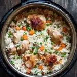 Can I use chicken breasts instead? Yes, but thighs stay juicier under pressure. What about brown rice? It’s doable but will need longer cooking time. Can I double the recipe? Probably, but you might need to adjust the liquid slightly to avoid dryness. Is it freezer-friendly? Leftovers freeze okay but rice texture can change.