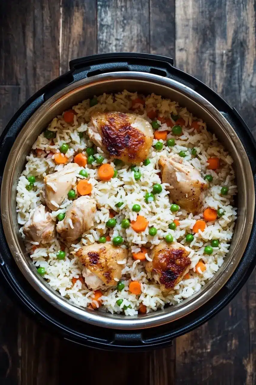 I remember the first time I tried it—half distracted by a buzzing phone, I almost forgot to seal the Instant Pot. But that little slip didn’t ruin a thing. Instead, it added this tiny moment of imperfection to an otherwise smooth process. The rice came out fluffy, the chicken juicy, and the peas and carrots gave a pop of color and sweetness. It’s definitely one of those meals where you don’t mind if it’s a little messy on the plate.