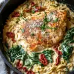 I remember the first time I made this, the kitchen filling with the smell of garlic and sun-dried tomatoes while the orzo cooked slowly. I was halfway distracted by a phone call, stirring the pot somewhere between impatience and curiosity, wondering if it would turn out right without my usual fuss. But the creamy sauce thickened just perfectly, and the spinach wilted into the mix in a way that felt effortless, even though I probably should have watched it more closely. That kind of messy, comforting cooking is exactly why this recipe sticks with me.