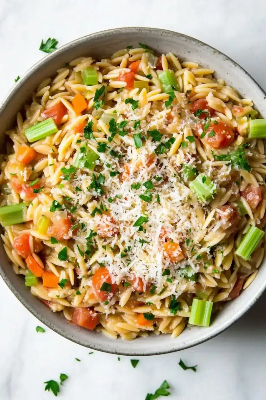 I remember the first time I made this dish—it was one of those days when I got home just as the sky turned pink, and honestly, I was half distracted by a call I’d been trying to return. I chopped the onion and carrots somewhere between distracted and focused, the gentle sizzle in the pot grounding me. The aroma of garlic blooming in olive oil reminded me of simpler dinners with friends, where no one cared about perfect timing or presentation. Stirring the orzo into that bubbling broth felt like the kind of small, comforting ritual that just makes everything a little better. It’s not fancy, and I didn’t measure quite perfectly, but somehow it came together beautifully, with the Parmesan melting in at the end making the whole thing feel like a hug on a plate.
