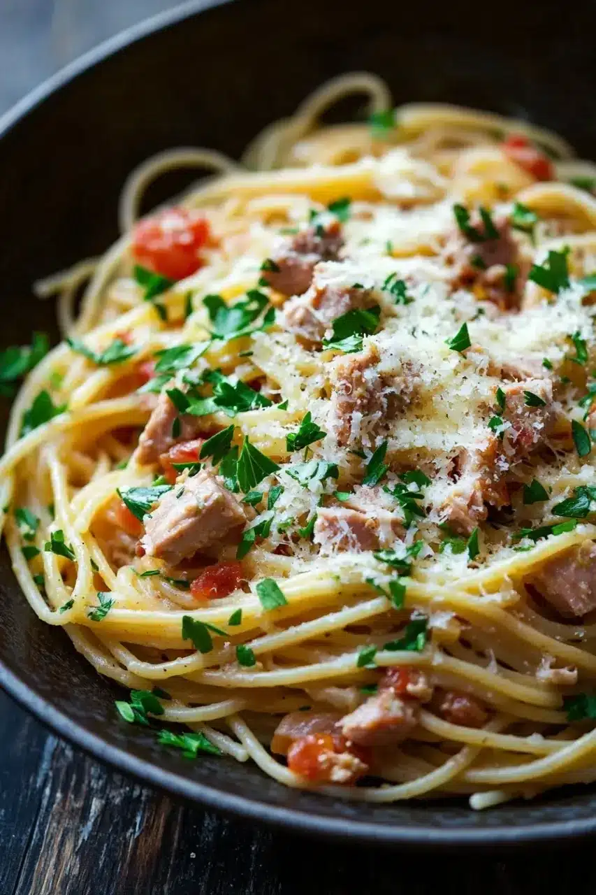 I remember the first time I made this dish; I was halfway through an email on my phone, chopping onions with one eye on the clock. The kitchen smelled like garlic and herbs before I even got the pasta in the pot. At some point, I realized I had almost forgotten to add the tuna — a little snag that made me laugh, thinking how distracted I was. But the flavors? They came together beautifully, with a cozy warmth that made me sit down and actually enjoy my meal instead of rushing through it. It’s the kind of dish that feels a little homemade, a little indulgent, but mostly just easy enough to pull off on a hectic night.