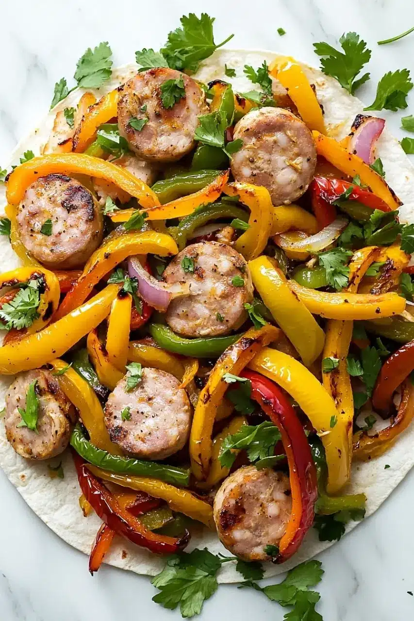 When I make this, I usually use a sturdy rimmed sheet pan that holds everything without crowding the ingredients. Warming the tortillas right before serving keeps them soft and pliable, perfect for wrapping around the juicy sausage and peppers. Sometimes I swap in turkey sausage or add a handful of sliced mushrooms if I’m feeling adventurous, but those tweaks are more about what’s in the fridge than strict rules. A squeeze of lime at the end brightens everything up, and a sprinkle of fresh cilantro adds that fresh pop—though I admit I forget the cilantro more often than not.