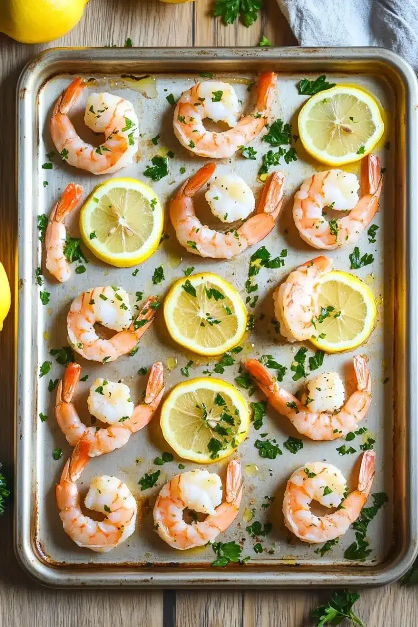 A quick and easy sheet pan shrimp recipe featuring succulent shrimp roasted with fresh lemon, garlic, and herbs. Perfect for a healthy weeknight dinner with minimal cleanup.