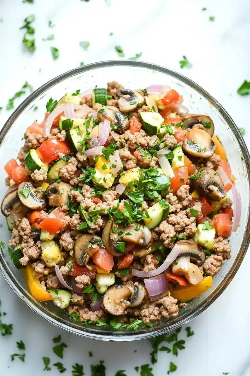 A quick and flavorful ground turkey skillet dinner packed with vegetables and savory spices, perfect for a healthy weeknight meal.
