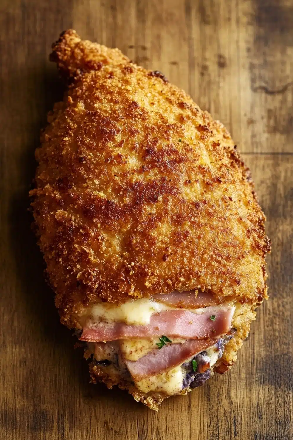 A delicious twist on the classic chicken cordon bleu, this recipe features tender chicken breasts wrapped with savory ham and melted Swiss cheese, then breaded and fried to golden perfection. Served with a creamy Dijon sauce, it’s a satisfying meal perfect for any occasion.