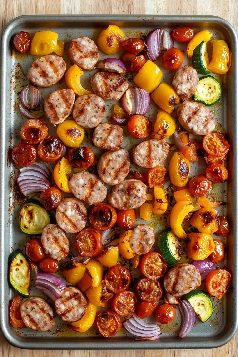 A quick and easy sheet pan meal featuring flavorful chicken sausage and a medley of roasted vegetables. Perfect for a healthy weeknight dinner with minimal cleanup.