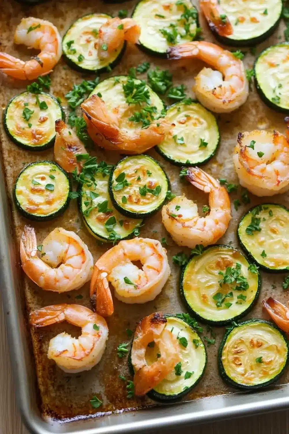 A quick and easy sheet pan meal featuring succulent shrimp and tender zucchini roasted with garlic and Italian seasoning. Perfect for a healthy weeknight dinner.