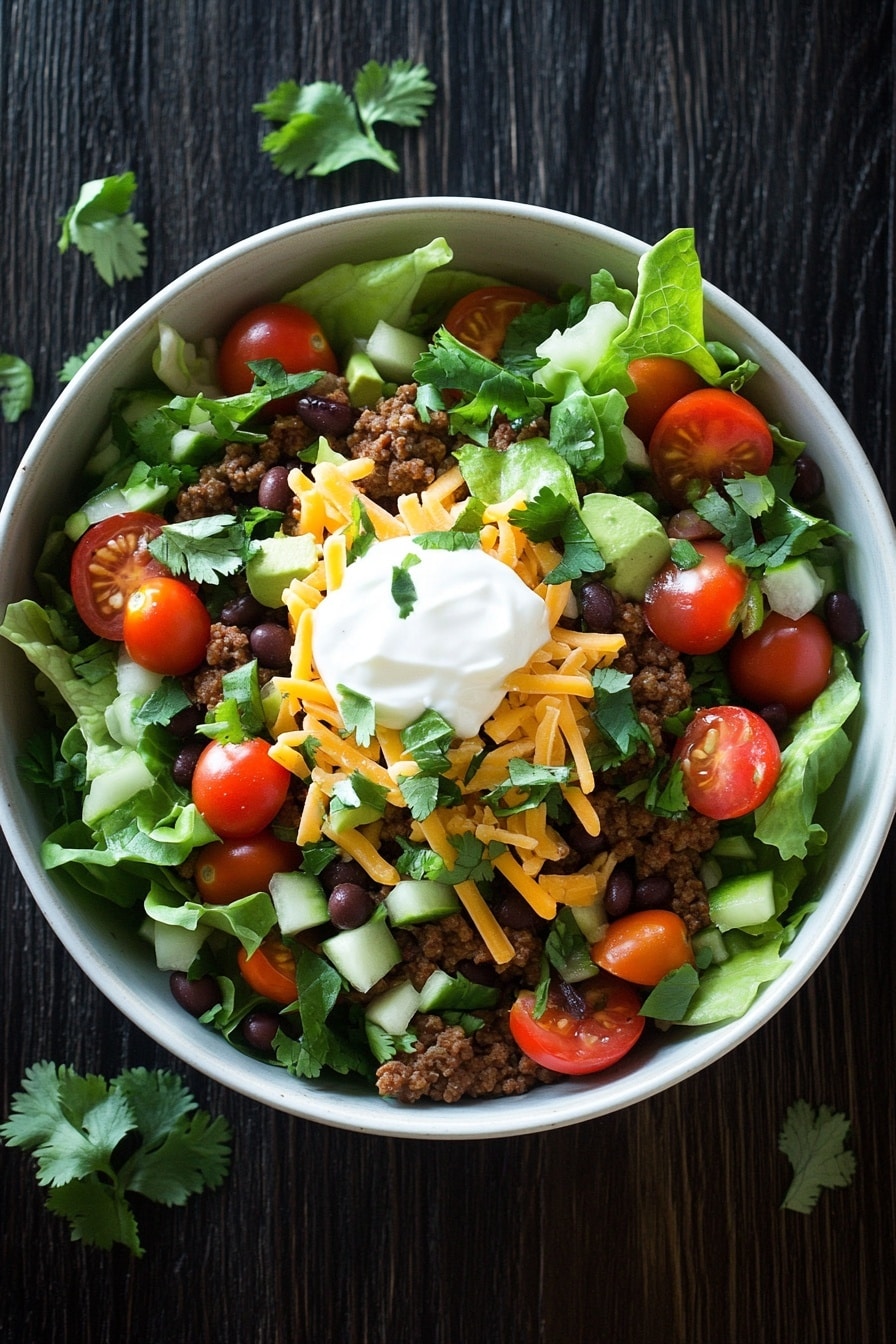 Sometimes, the middle of the week sneaks up on you, and suddenly you’re staring down the fridge wondering what’s both filling and fresh. This high protein beef taco salad steps in right when you need it most — a lively mix of seasoned ground beef, crisp veggies, and a limey dressing that wakes up your taste buds.