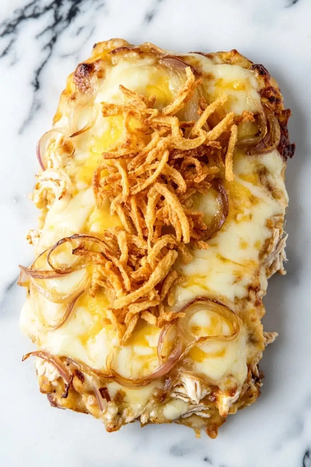 A comforting and savory casserole combining tender chicken, caramelized onions, and melted cheese, inspired by the classic flavors of French onion soup.