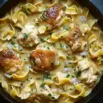 Some dinners just feel like a hug on a plate, and this chicken noodle skillet with gravy is exactly that. One evening last week, after a day that ran long and left me a little frazzled, I pulled out a skillet, hoping for something simple but satisfying. The aroma of sizzling chicken mingling with garlic and onions filled the kitchen, and I found myself leaning in, almost forgetting to stir the pot as the gravy started to thicken. The noodles cooked right in the sauce, soaking up every bit of flavor, and the fresh parsley sprinkled on top gave it a little unexpected brightness. I wasn’t in a rush to eat; it was more about the comfort of that warm skillet on the stove, the soft clink of the spoon, and the quiet moment of knowing dinner was ready, even if my day wasn’t perfect.