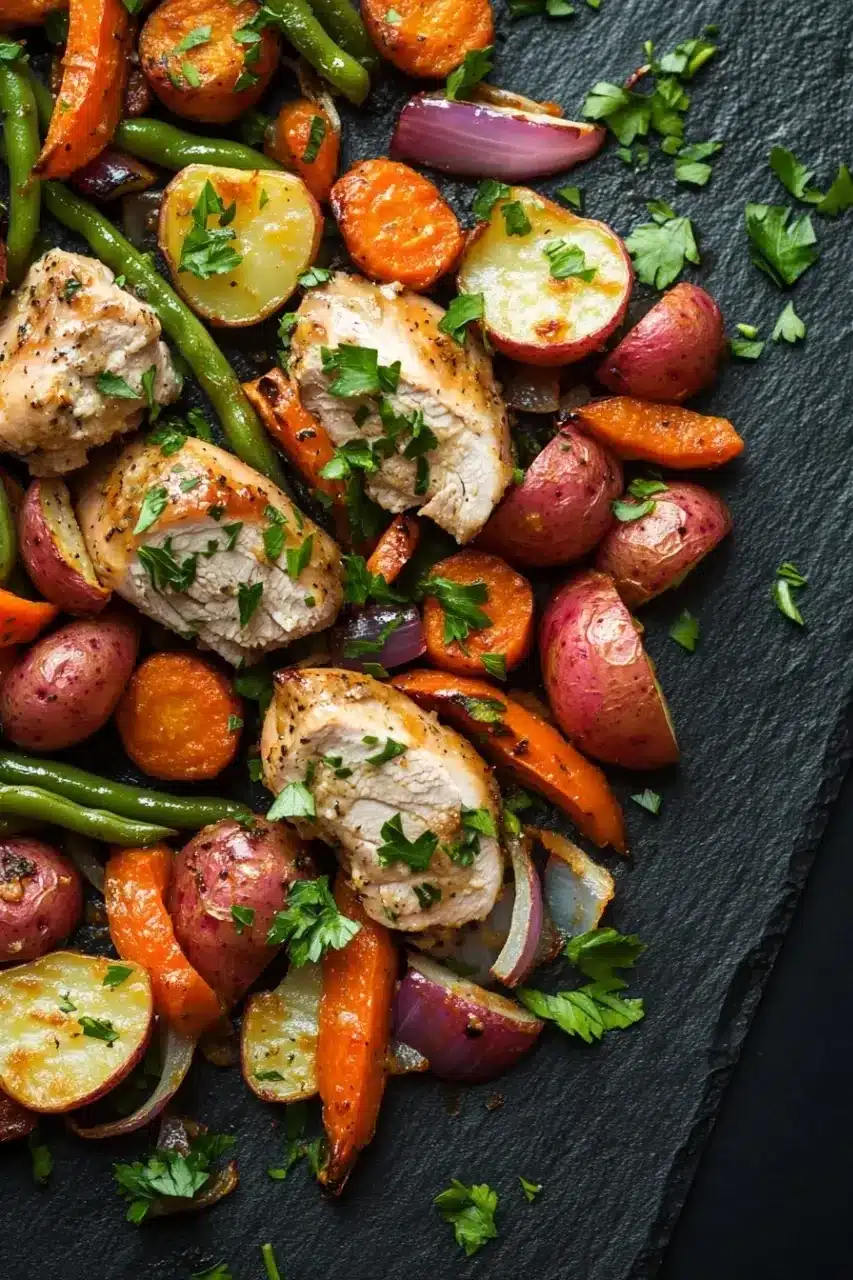 I remember the first time I made this; the timer was ticking down, but I was distracted by a text that pulled me halfway across the room. When I finally got back, the kitchen smelled like the kind of place where stories are shared over dinner. The turkey was juicy, the potatoes had that perfect roasted edge, and the carrots tasted sweeter than I expected. It wasn’t perfect—some veggies were just a little more done than others—but that made it feel homey, real, and somehow comforting.