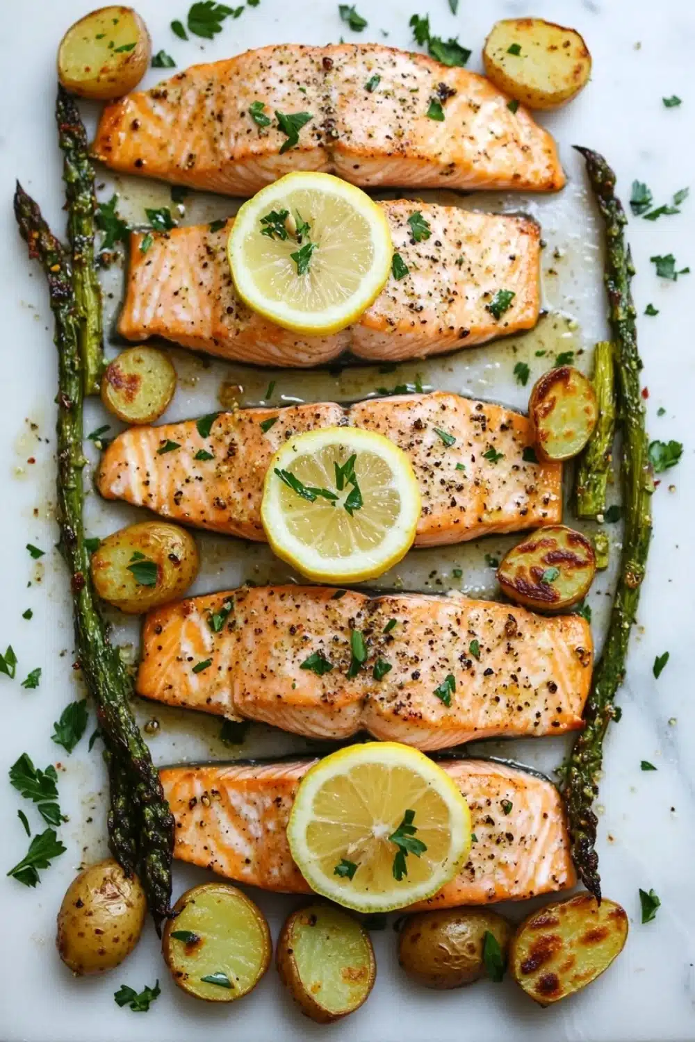 One evening, I remember juggling a distracted toddler while the timer ticked down. I wasn’t sure if I’d undercooked the salmon or let the asparagus get too limp, but it all came together in a way that felt surprisingly satisfying. The lemon slices on top lend a brightness that cuts through the richness, and the fresh parsley sprinkled last-minute adds that herbaceous pop you didn’t know you needed. It’s a little imperfect—sometimes the potatoes get crispier on one side, or I forget to season just right—but that’s part of the charm that makes it feel like home.