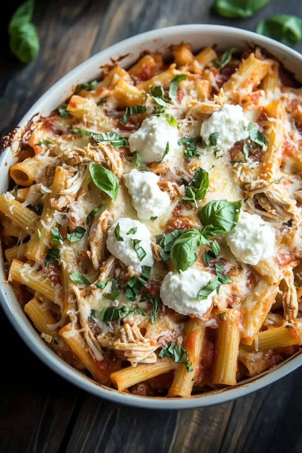 A comforting and hearty slow cooker chicken ziti recipe featuring tender chicken, ziti pasta, marinara sauce, and a blend of cheeses, all cooked together to perfection for an easy and delicious meal.