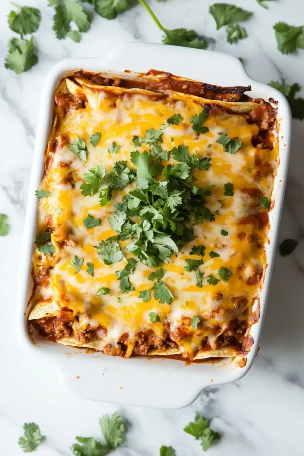 Kitchen Notes: You don’t need fancy baking dishes for this; a simple, sturdy pan does the trick. I usually serve this with a side of black beans or a crisp green salad to lighten things up. Sometimes I swap out the cheddar for pepper jack if I’m in a spicy mood, or toss in a few jalapeño slices for an extra kick. I haven’t tested it with flour tortillas instead of corn, but it might change the texture a bit — definitely worth experimenting if that’s what you have on hand.