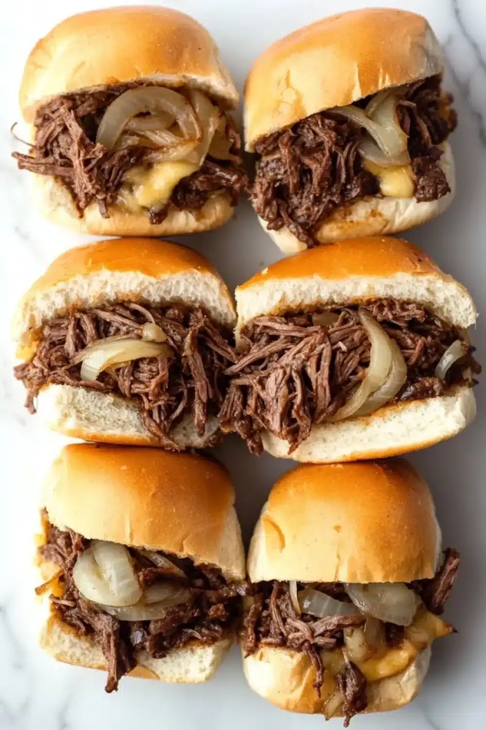Kitchen Notes: You don’t need anything fancy to pull this off — just a slow cooker and a sturdy skillet to sear the beef. When serving, I like to pair these sandwiches with a simple green salad or some crispy oven fries. Sometimes, I toss in a handful of mushrooms with the onions for a deeper flavor, though I haven’t tested that with the au jus as thoroughly. If you want to switch things up, swapping provolone for mozzarella or even a sharp cheddar can add a new twist, but honestly, the classic combo never disappoints. Also, if you’re in a rush, you can skip broiling and just melt the cheese with the residual heat of the beef — it’s not quite the same, but it works.